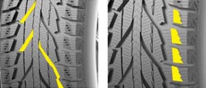 The serrated edge design of the tread blocks provides excellent snow grip, improving handling performance.